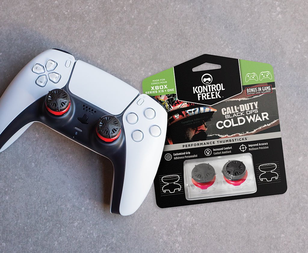 Increase your advantage with Call of Duty®: Black Ops Cold War Performance Thumbsticks®. The set includes two high-rise, convex thumbsticks for maximum precision and an original, ergonomic design crafted from Cold War-inspired elements for exceptional grip. They will allow you to optimize your in-game sensitivity to more quickly neutralize threats, secure your targets and excel at the signature combat found in the next chapter of the iconic Black Ops experience.