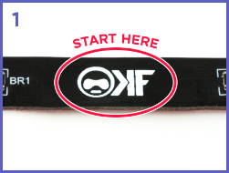2. Dobla la tira al lado del logo para que el adhesive mire para fuera.