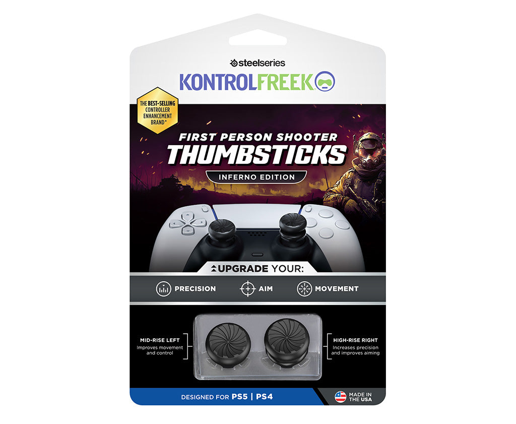KontrolFreek Performance Thumbsticks for First Person Shooters are engineered to dramatically upgrade your aiming and precision, while increasing grip and delivering better control. Inferno Edition thumbsticks give you enhanced performance when the competition heats up.
