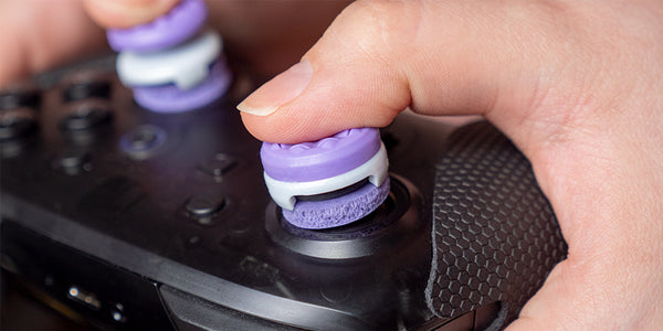 KontrolFreek Precision Rings come in two strengths: hard and medium. The strengths, measured in durometers (measures a material's resistance to permanent indentation), allows you to customize your resistance level. Our original black rings are hard strength for the most resistance possible, and our new purple rings are medium strength for added flexibility. Precision Rings will fit on any controller, including PlayStation, Xbox, and Switch.