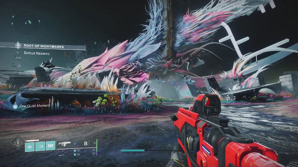 Ad clearers in the middle, when you damage Nezarec enough, he will emit an explosion of either light or dark. Make note of this color and call it out to your runners. Halfway through their run the opposite color runner will activate a node on the color you called out, which will activate a refuge zone, similar to the one in the jumping section of encounter 2.5. For example, boss handlers damage Nezarec’s shoulder enough that he gives off a burst of orange darkness, which they call out to the runners. Since the safe side is dark, the light side runner will need to shoot any already active dark side node to create the refuge zone. All players need to enter the refuge zone to acquire the buff, but once Nezarec starts performing the wipe mechanic, everyone can leave and get back to their respective positions. Once the second set of chains have been completed by the runners, another beam of darkness will hit Nezarec and he can be damaged again. Group up on your plate with well of radiance and any supers you have. If you get his health down to the final bar, he will do a short animation, and then be damageable again in his final stand. Burn down his last shred of health and claim victory over the Final God of Pain and your loot for completing the Root of Nightmares raid! If you complete the requirements for the extra red border chest, you’ll receive that, and you can also purchase one red border a week if you approach the relic at the top of the stairs. Congratulations on beating the raid guardian!