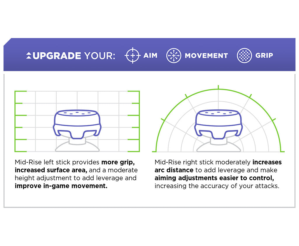 KontrolFreek’s CQC Rush™ is a unique, bold, mid-rise Performance Thumbstick® with a wide, raised-edge design. It cradles your thumb for exceptional speed and grip in every game you play. The soft wall created by the concave design reduces slips and allows for quick reactions in all directions.