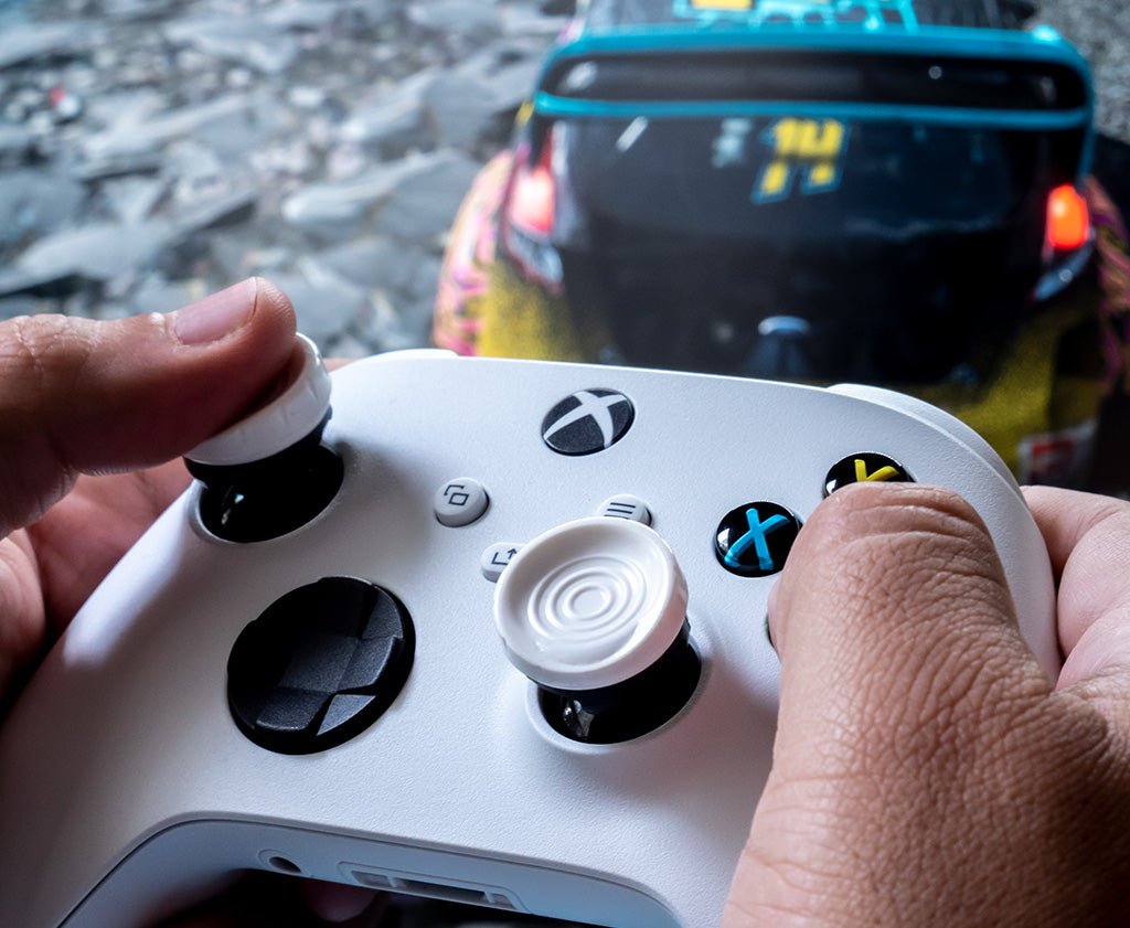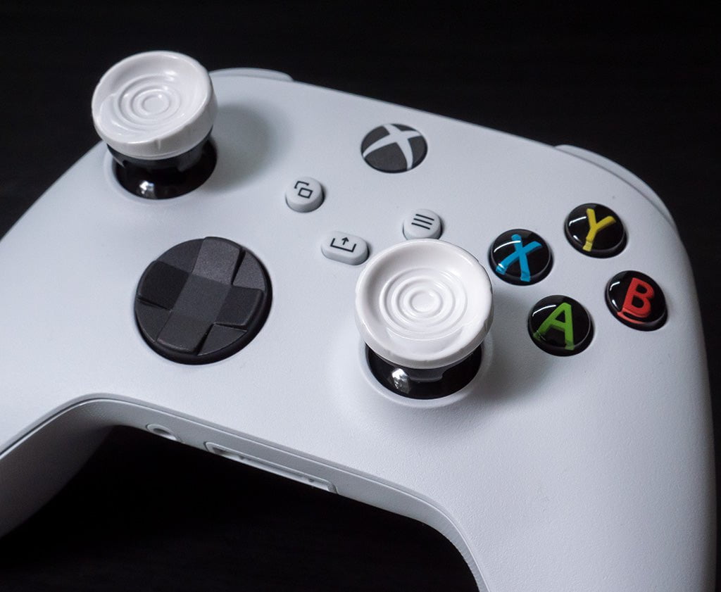 The soft wall created by the concave design reduces slips and allows for quick reactions in all directions. It’s particularly optimal for gamers who prefer to keep their thumbs centered on their thumbsticks or for those who play claw-style or with paddles. The circular pattern inside the cavity increases grip for even more control. Rotate the raised edge to customize the design to fit your gameplay needs.