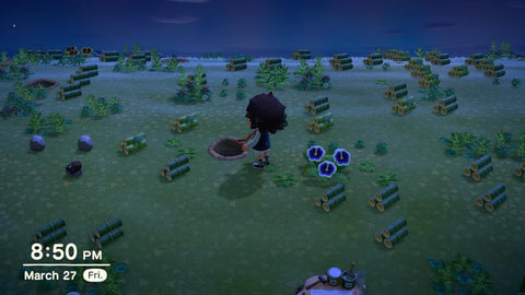 As you go, you can collect and move all of the island’s cleared resources to the beach. Simply pick up everything and drop it out of the way. While you can leave things in place, having items left everywhere make it difficult to see the insects you are hunting. Fortunately, Animal Crossing: New Horizons allows you to place things on the ground just about anywhere.