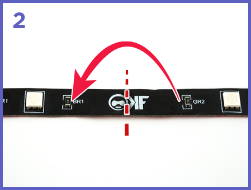 2. ストリップをもう一度反対方向に上向きに折り曲げて、LED、電子機器、または接続に干渉しないきちんと
