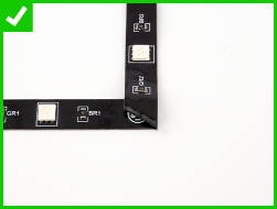 3. Dobla la tira una segunda vez en la dirección contraria hacia arriba creando un ángulo de 90* perfecto que no va interferir con los LEDS ni con los conectores.