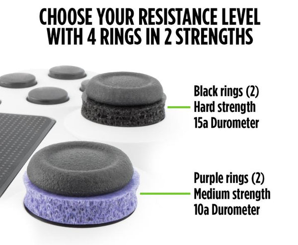 KontrolFreek Precision Rings come in two strengths: hard and medium. The strengths, measured in durometers (measures a material's resistance to permanent indentation), allows you to customize your resistance level. Our original black rings are hard strength for the most resistance possible, and our new purple rings are medium strength for added flexibility. Precision Rings will fit on any controller, including PlayStation, Xbox, and Switch.