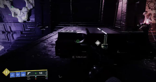 In between the first and last doors, there is another door that can be opened for our second free raid chest. In this location, there is a node on the back of the building that can be shot to open the door to this room, where there is a light and dark node to refresh your buff, and a free raid chest!