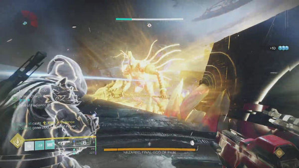 Congratulations on making it this far! You’ve reached the Final God of Pain, Nezarec. Disciple of the Witness and leader of the black fleet during the collapse, we’ve been waiting to get our revenge on this guy for a long time. Firstly, let’s talk about what loadouts work well against this boss. The damage check isn’t as intense as previous encounters, but you will still want to be rocking your high damage loadouts for each class. This means starfire welllocks, Cuirass of the Falling Star Thundercrash Titans, Star Eater Scales Strand Hunters, and anything else that can pump out massive damage. Well of Radiance is essentially mandatory for the damage phase. We also recommend having at least one player focus on debuffs, such as Divinity or Tractor Cannon.