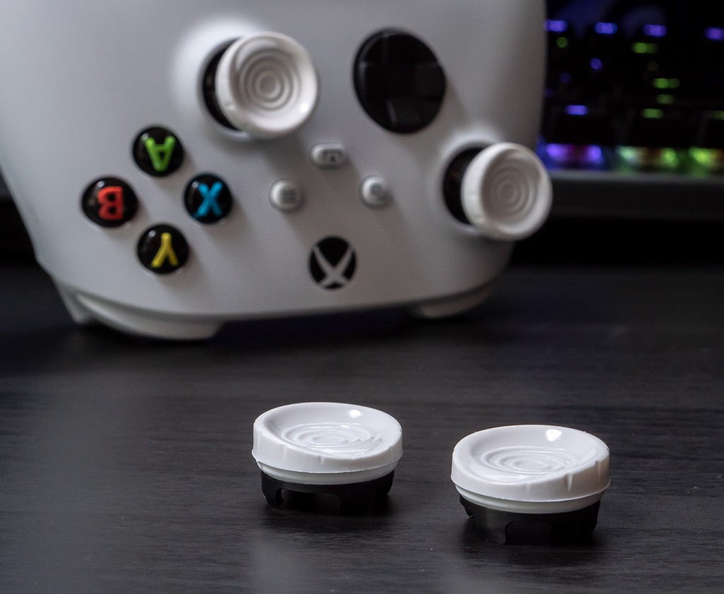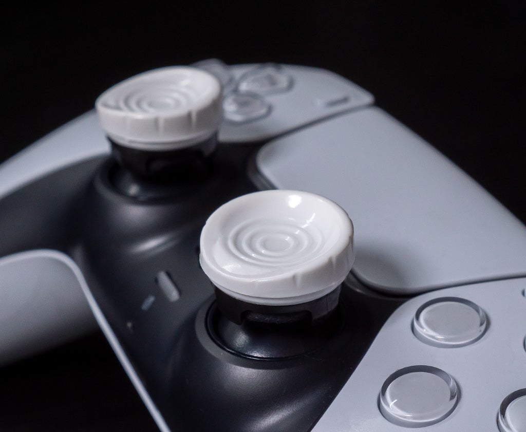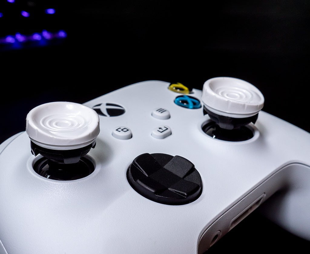 The soft wall created by the concave design reduces slips and allows for quick reactions in all directions. It’s particularly optimal for gamers who prefer to keep their thumbs centered on their thumbsticks or for those who play claw-style or with paddles. The circular pattern inside the cavity increases grip for even more control. Rotate the raised edge to customize the design to fit your gameplay needs.